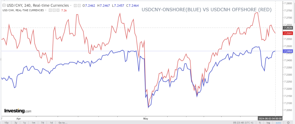 EURUSD traded weakly and dropped from 1.0860 to 1.0827 in NY. S&P Global noted: Eurozone Manufacturing PMI rose to 47.3 in May from 45.7 in April. While this was still below the 50.0 no-change threshold, it was the highest reading in the headline index since March 2023, indicating the slowest deterioration in the health of the euro area goods-producing sector for over a year. Traders are also cautious ahead of Thursday’s ECB meeting.
