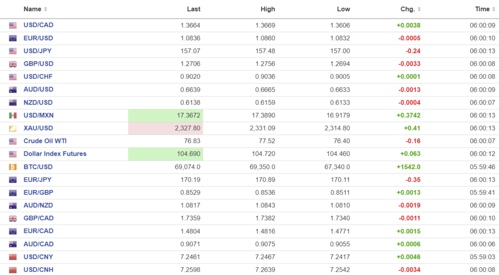 USDMXN soared from 16.9179 to 17.3214 as investors showed their displeasure with the Mexican election results. Presidential candidate Claudia Sheinbaum won by over 30% which was expected but markets were spooked by the size of the win of her Morena party, which has won a “super majority.” Investors fear the left-wing party will pass non-market friendly legislation. Time will tell.