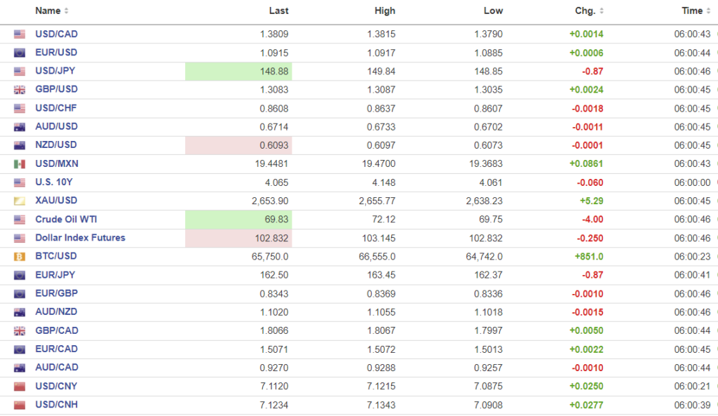 FX high, low, open (as of 6:00 am ET)