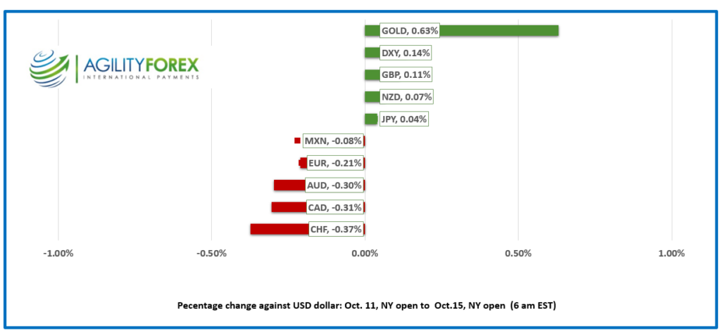 USDCAD open 1.3809, range since Mon. 1.3758-36, close Oct. 11, 1.3763. Oct. 14, 1.3797