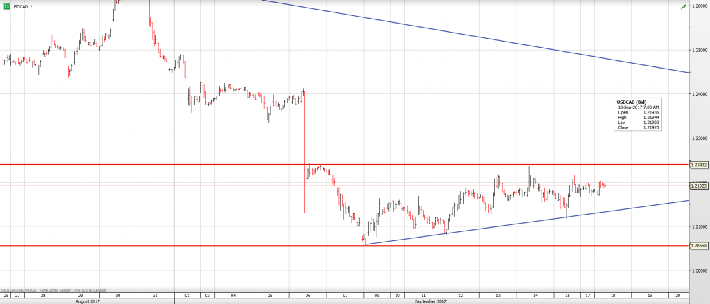 USDCAD traded choppily inside a narrow range. Positives from firm oil prices and a hawkish Bank of Canada were offset by concern ahead of the FOMC meeting