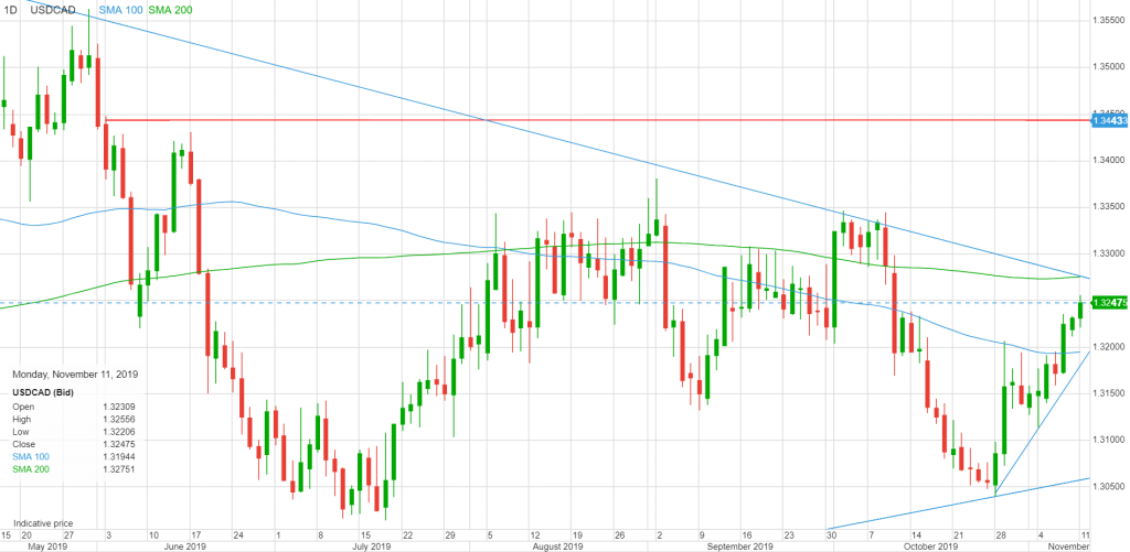 USDCAD is trading with broad US dollar sentiment. The currency won’t find any direction from domestic economic data this week because what is available is limited and second tier. Instead, US dollar sentiment, technicals, Wall Street, and the debate about Don Cherry getting fired will provide the distraction.