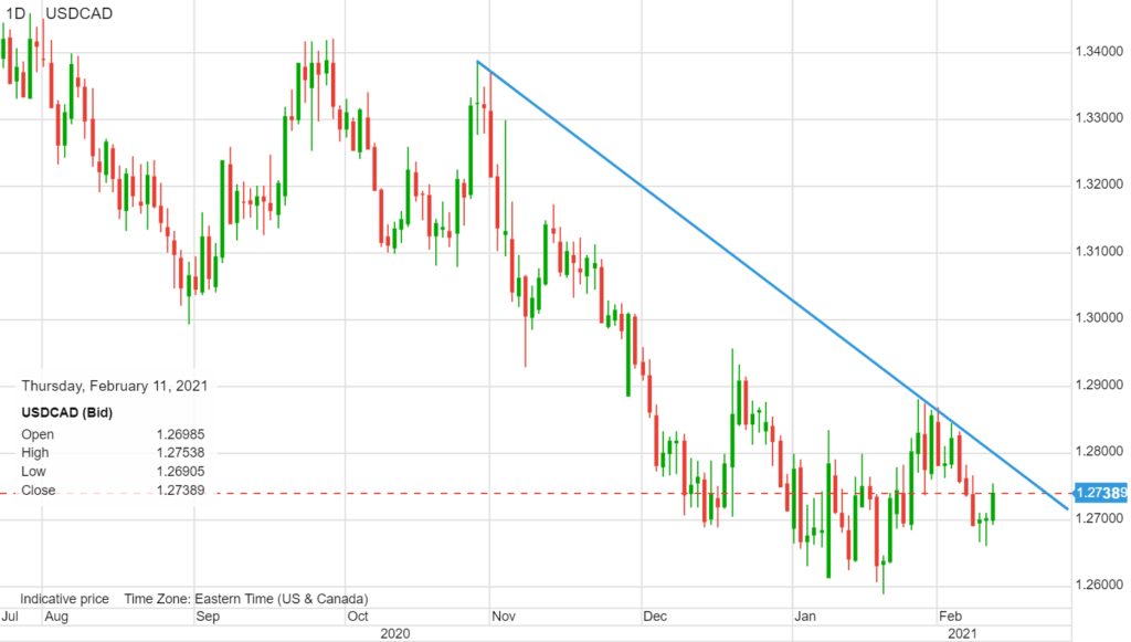 USDCAD open (6:00 am ET) 1.2736-40, Overnight Range 1.2698-1.2754, Previous Close 1.2704
