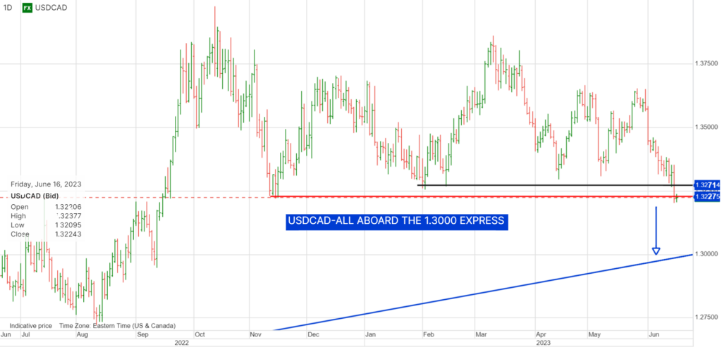 USDCAD does not have much support between 1.3210 and 1.3000 which may arrive in a hurry if speculators who are short Canada bail on their positions.(Commitment of Traders June 6 showed short CAD trades at 38,300 contracts-$3.8 billion)