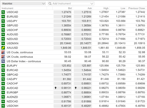 FX open (6:00 am EDT) High, Low, and previous close
