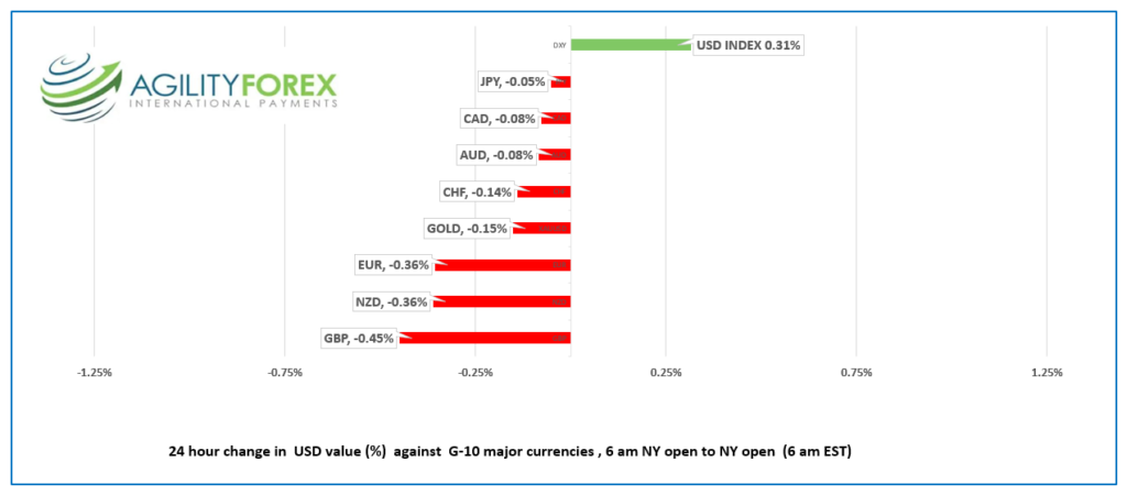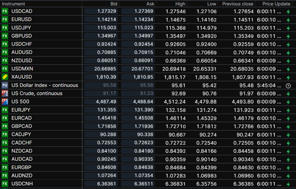 FX open, high, low, previous close as of 6:00 am ET