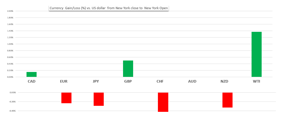 Change in Currency value vs the US dollar-   NY close  to NY open