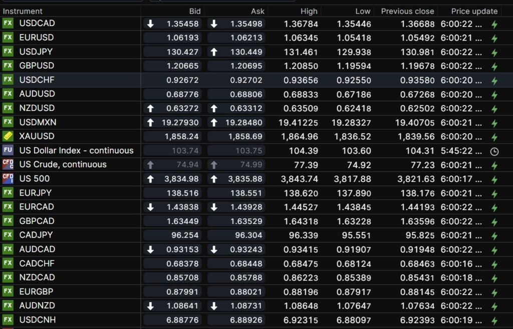 European bourses climbed steadily with the German Dax gaining 1.64% helped by improving Eurozone Services PMI data. S&P 500 futures have gained 0.63% underpinned by the slide in the US 10-year Treasury yield from 3.754% at yesterdays close to 3.673% today.