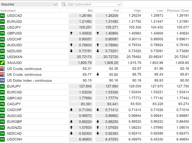 FX open (6:00 am EDT) High, Low, and previous close