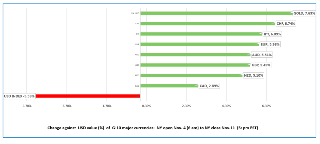 FX at a glance: one week-Nov 4 open to Nov 11 close