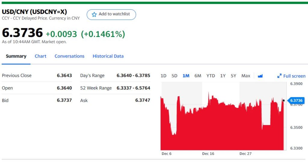 Chart: USDCNY 1 month