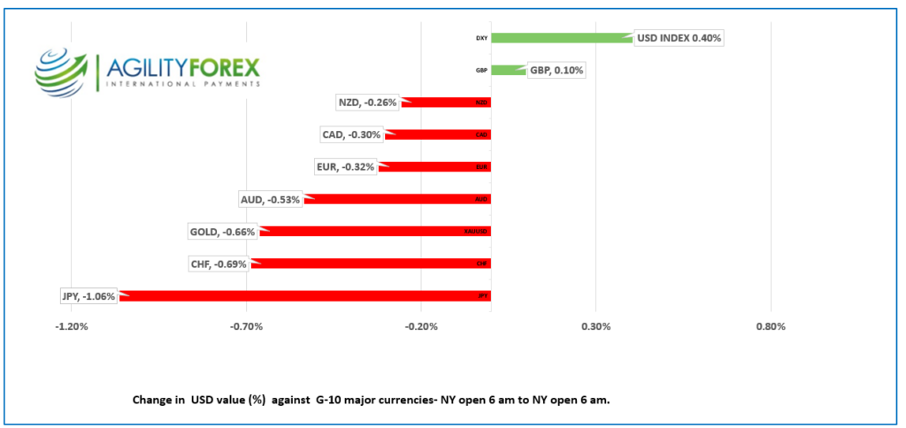 - US dollar opens with gains-JPY drops 1.06% from yesterday’s open.