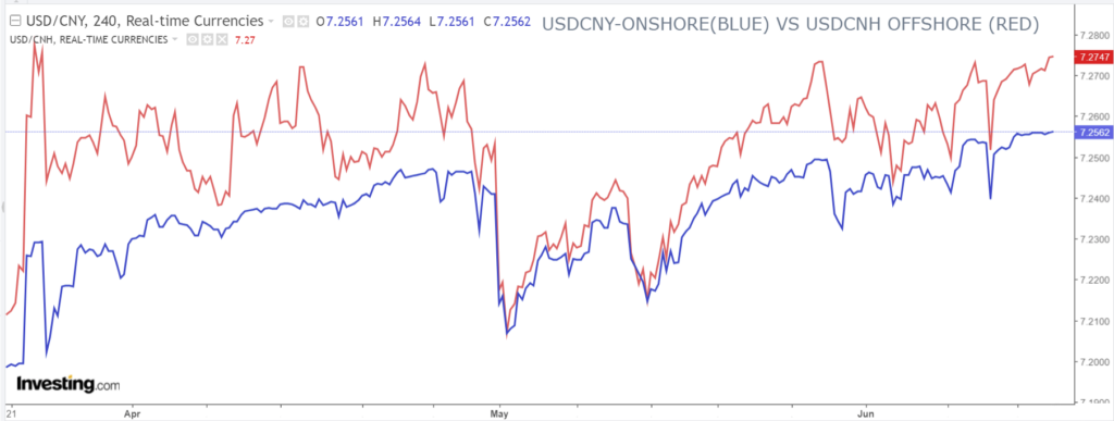 Chart: USDCNY and USDCNH