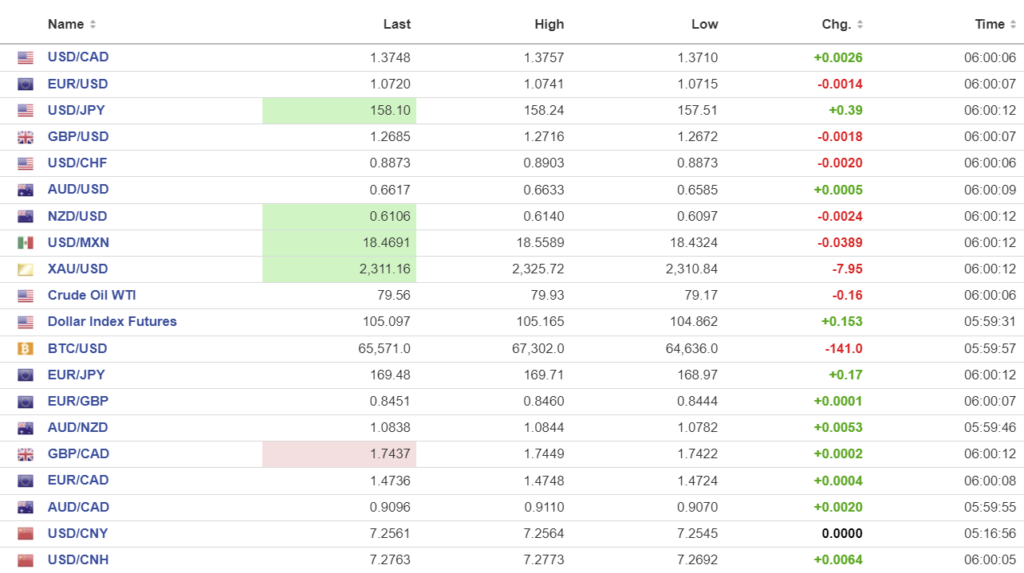 FX high, low, open (as of 6:00 am ET)