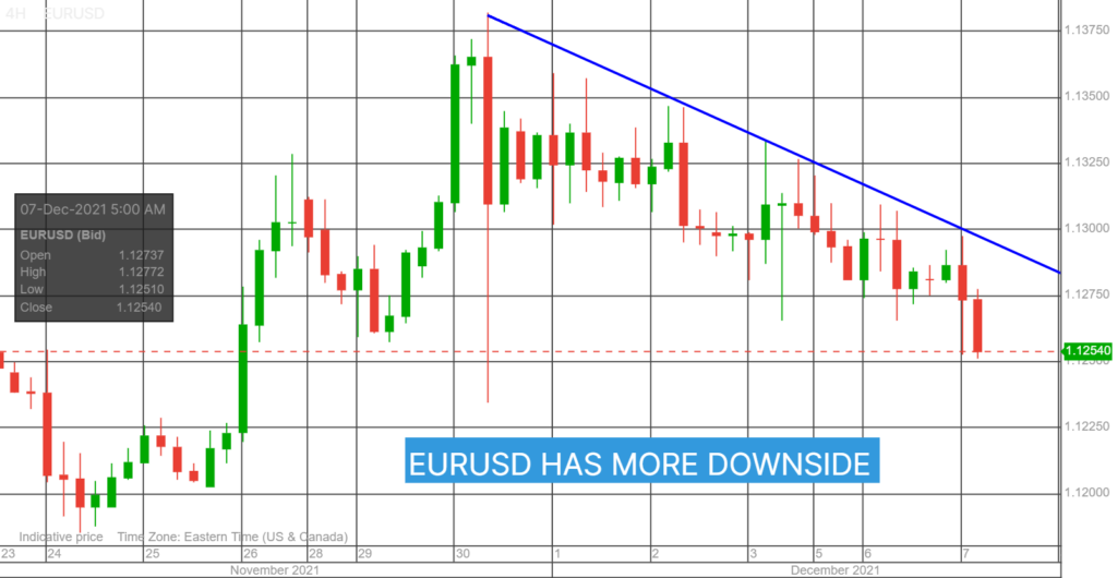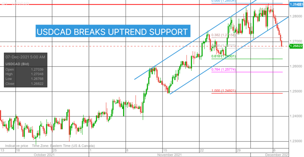 USDCAD dropped as risk sentiment improved. Higher Wall Street stock prices and the rebound in WTI prices due to diminished concerns that the Omicron variant will derail global and domestic growth knocked prices lower.