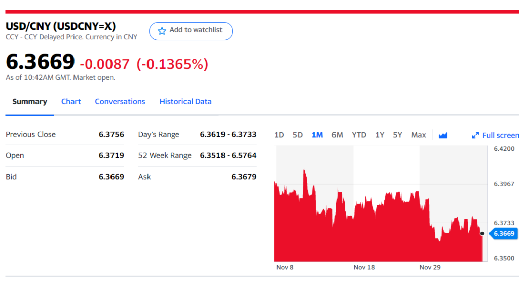 Chart: USDCNY 1 month