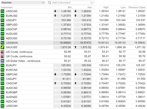 FX open (6:00 am EDT) High, Low, and previous close