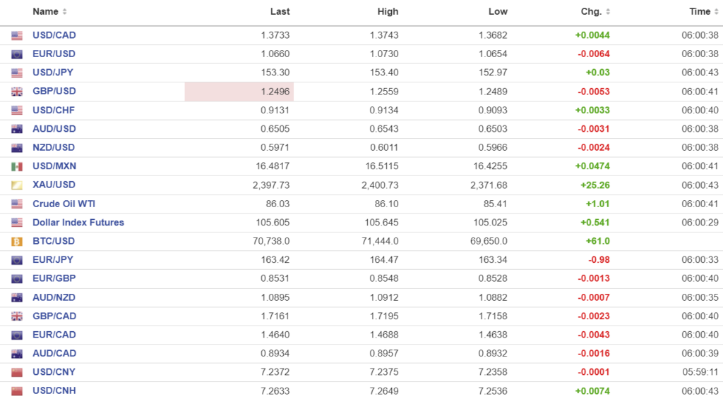 GBPUSD is at the bottom of its 1.2480-1.2559 range due to fallout from yesterday’s ECB hint that a June rate cut is likely. UK GDP rose 0.1% in February (as expected), while January’s result was revised up to 0.3% from 0.2%. Manufacturing and Industrial Production rose more than expected, but the results were not enough to offset broad US dollar strength.