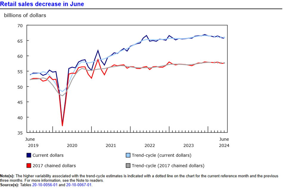- Canada June Retail Sales,ex-autos rebound from -1.2% in May to 0.3%m/m