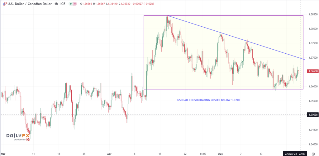 The daily chart shows a well-entrenched uptrend line at 1.3550 which is guarded by support at 1.3590 which has been the floor for USDCAD since the April 10 BoC meeting when Governor Macklem broadly hinted at a June rate cut.