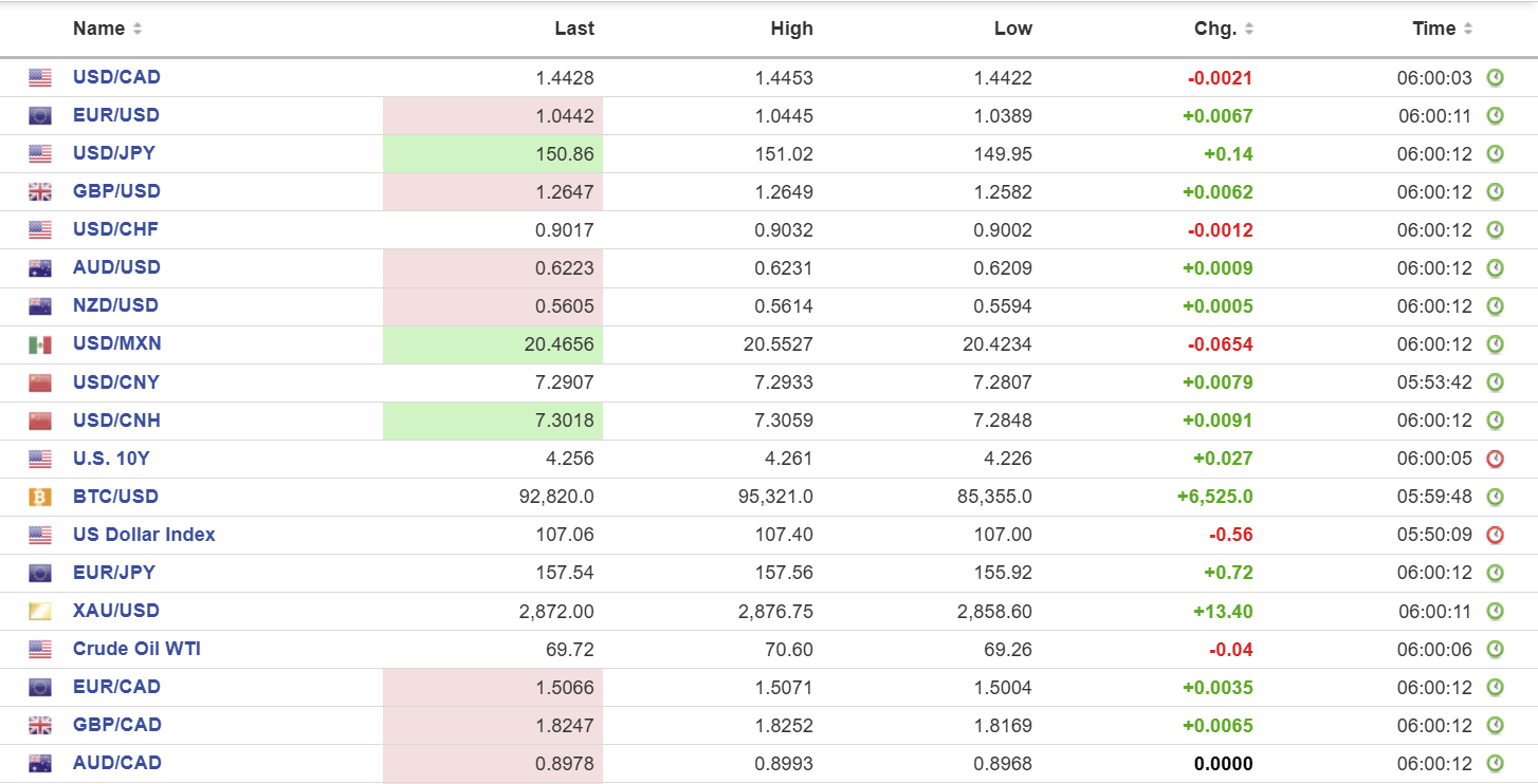 FX high, low, open (as of 6:00 am ET)