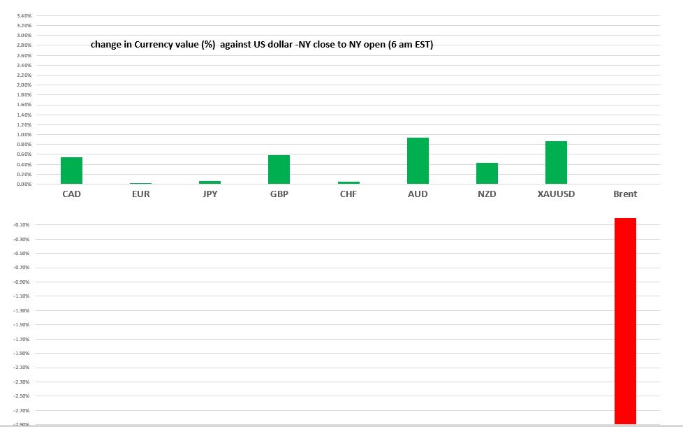 Chart: Currency gain/loss (%) against the US dollar from NY close to NY open (6:00 EST)