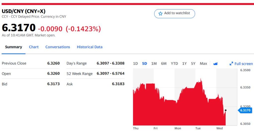 Today’s Bank of China Fix 6.3313, previous 6.3487