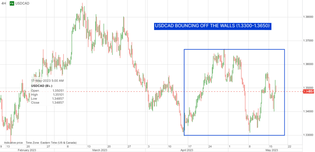 The USDCAD technicals are dancing a two-step. Bullish, bearish, then bullish again, all within a broad 1.3300-1.3650 range. That range has held since April 14 and will likely continue to hold until the Bank of Canada monetary policy meeting June 7.