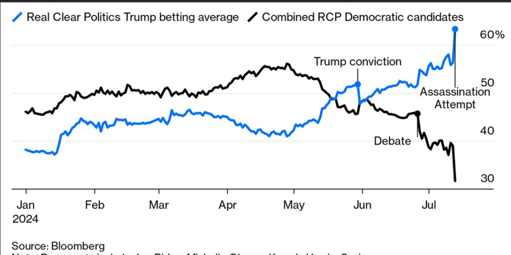 It can’t be that easy, can it? That path to the White House is simply the trajectory of a .223 Remmington calibre round fired from an AR style rifle. A convicted felon, a businessman who made a fortune while bankrupting 6 companies between 1991 and 2009, and a man found liable for sexual abuse and defamation is the odds-on favourite to win the 2024 US election because of a 20-year kid with a lousy aim.