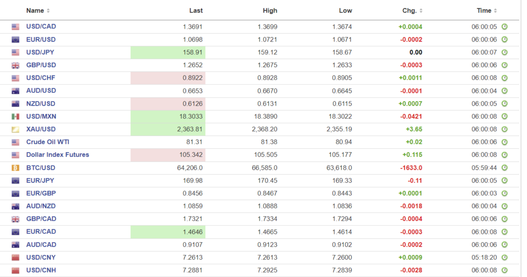 USDCAD open 1.3691, overnight range 1.3674-1.3705, close 1.3692