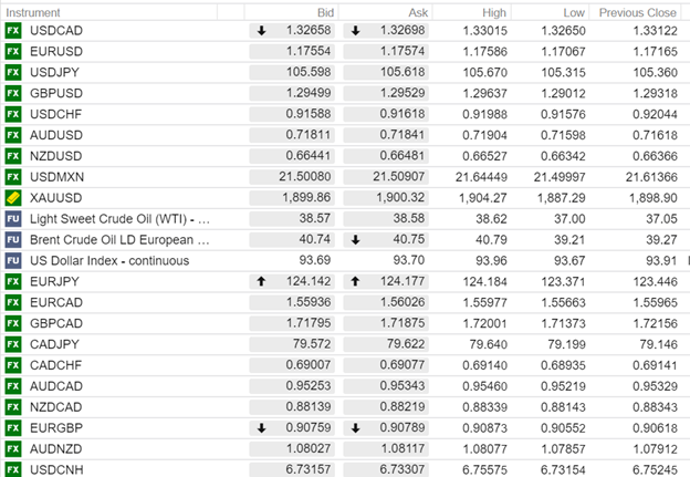 FX open (6:00 am EDT) High, Low, and previous close