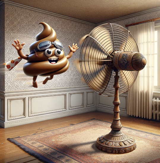 The fan is warmed up and spinning at full power. Beware.