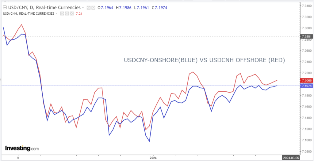 Chart: USDCNY daily and USDCNH