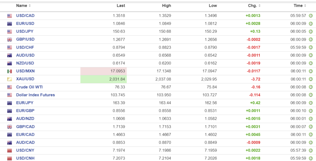 FX high, low, open (as of 6:00 am ET)