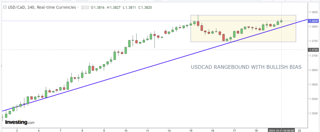 USDCAD is also supported by expectations that the BoC will cut rates by 50 bps to 3.75% at Wednesday’s meeting. The risk is if the updated monetary policy report forecasts point to a weak economic outlook, the governor’s comments will be very dovish, sparking another leg higher in USDCAD.