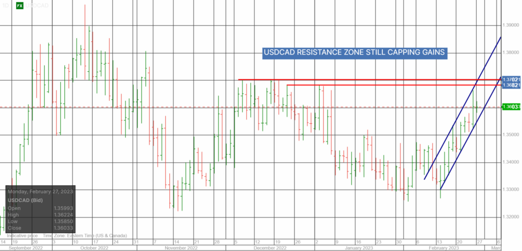 The intraday USDCAD technicals are bullish above 1.3560 which is the bottom of the uptrend channel from February 14 and looking to break above the top of the channel and resistance from previous peaks in the 1.3680-1.3700 area. If successful, USDCAD would rally to 1.3850. A break below 1.3550 targets 1.3510, then 1.3440.