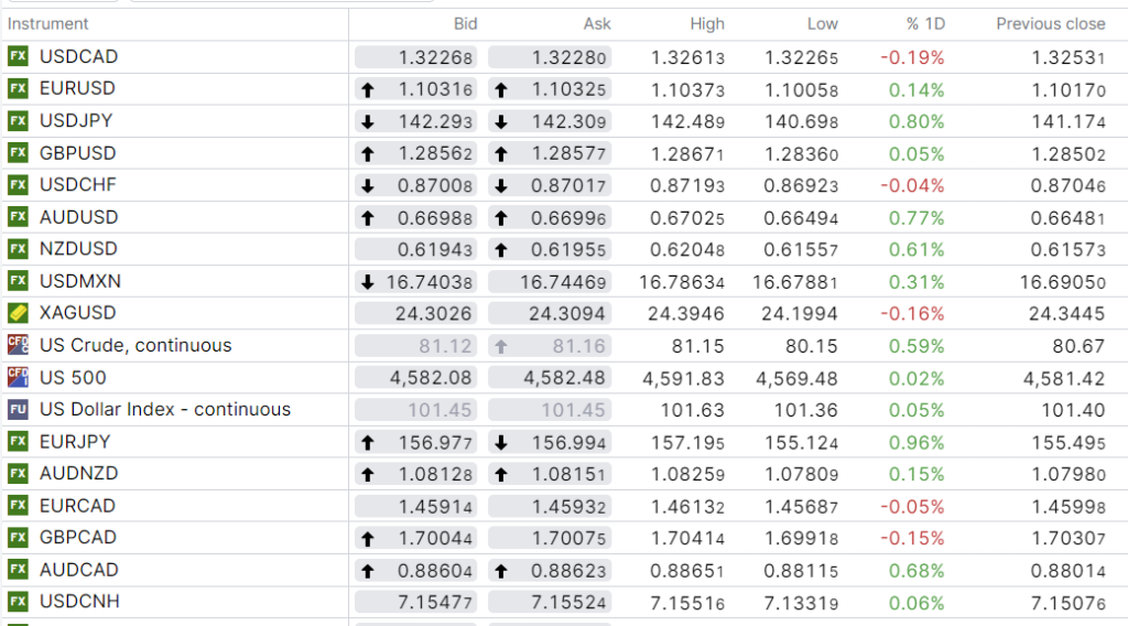 FX high, low, previous close