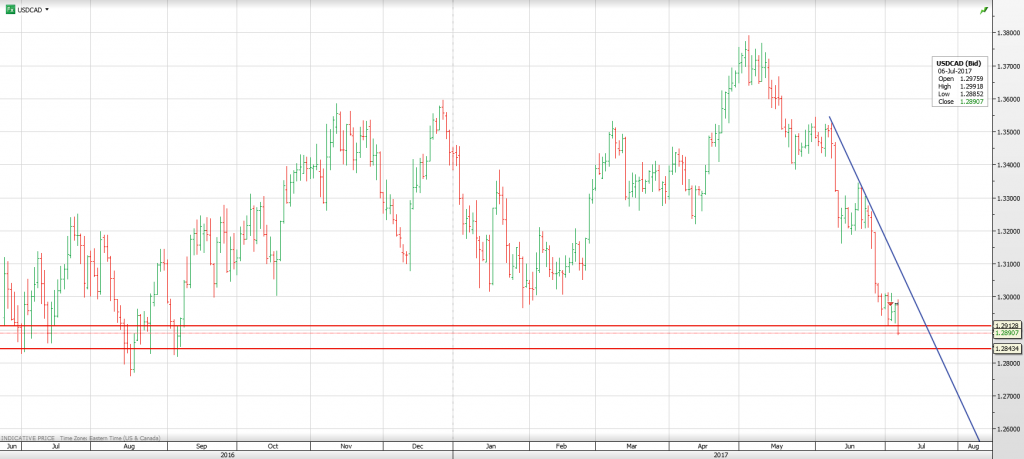 The USDCAD drop was encouraged by the FX market reaction to the US nonfarm payrolls data. NFP rose 222,000 vs. forecasts for 179,000 gain, Despite the rise, traders were disappointed by the tiny dip in average hourly earnings to 0.2% from a forecast of 0.3%, even though it is unchanged from the May data.