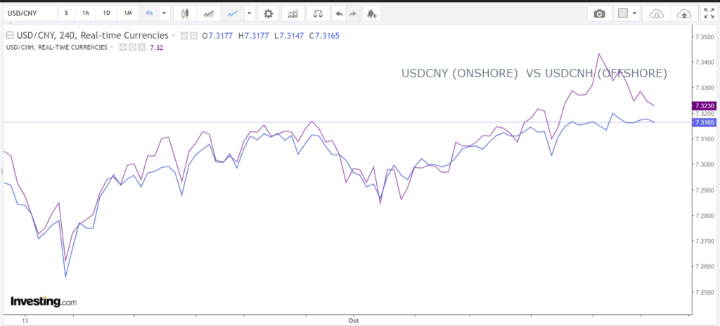 Chart: USDCNY (onshore) vs USDCNH (offshore)
