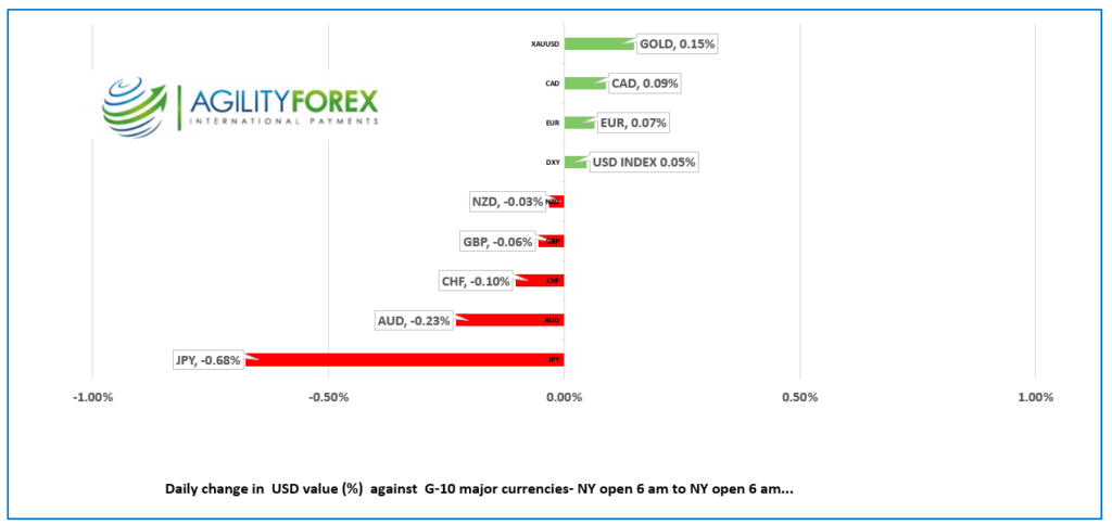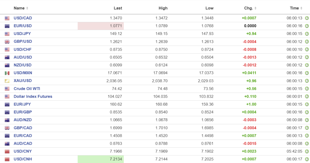 The S&P 500 index closed at 4996.06, up 0.82%. Asian equity indexes closed higher as well. Japan’s Nikkei 225 index soared 2.06% while Australia’s ASX 200 gained 0.37%. Hong Kong’s Hang Seng closed with a 1.27% loss. European bourses are treading water and S&P 500 futures are flat.