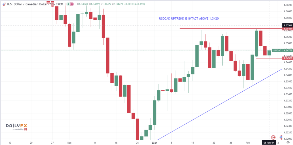 Longer term, the 2024 uptrend is intact above 1.3420.