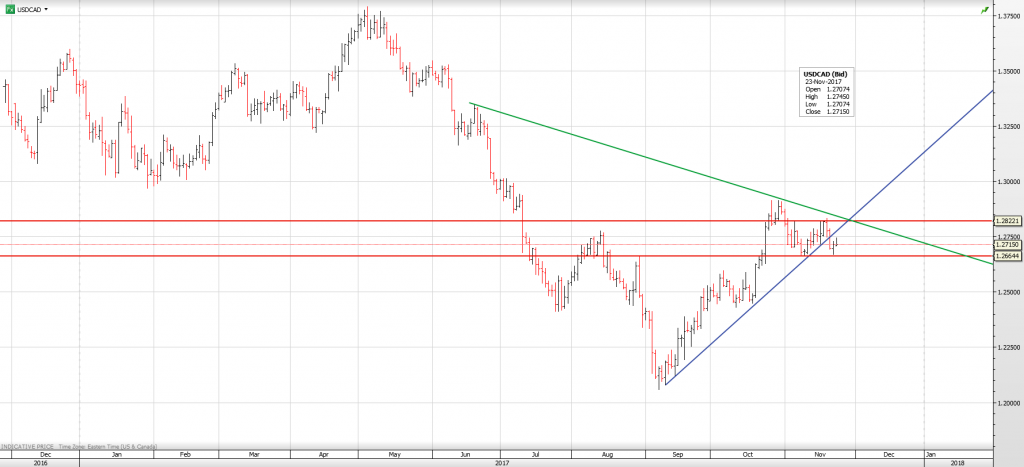The Intraday USDCAD technicals are bearish while prices are below 1.2750, looking for a break below 1.2700 to extend losses to 1.2660. Longer term, the decline from June 23 remains intact under 1.2830. The break below 1.2750 on November 22, suggests that the rally from the September low of 1.2465 was a correction and may lead to a retest of the 1.2560 area.
