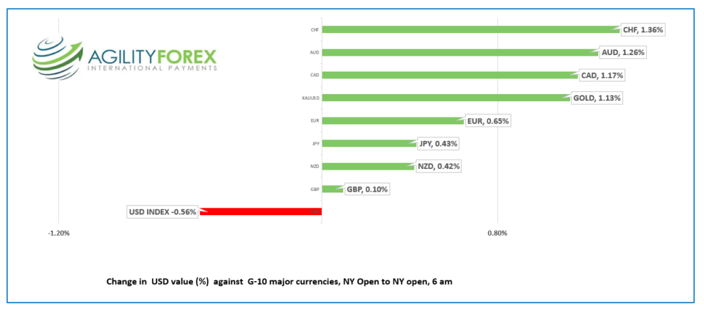 Residual US dollar selling from portfolio rebalancing flows competed with positioning ahead of today’s FOMC meeting.  The market wants the Fed to provide a clearer window as to when they will pivot, but a host of Fed policymakers have indicated that the timing for such a move, is not right. If the Fed sticks to its previously communicated view that interest rates need to remain in restrictive territory for longer than expected, the US dollar will rally, and equities will fall.