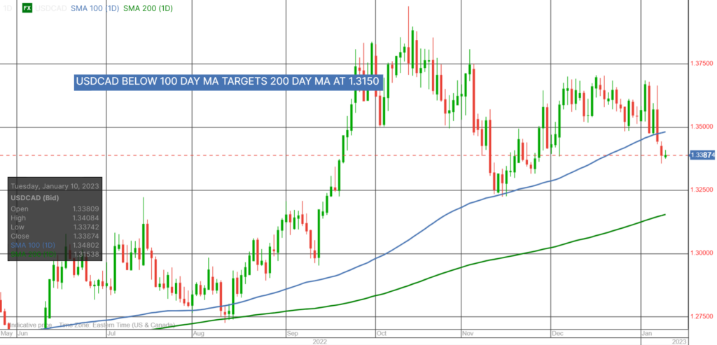 Longer term, the break below the 100 day moving average (1.3474) on Friday, sets the stage for a test of the 200-day moving average at 1.3150.