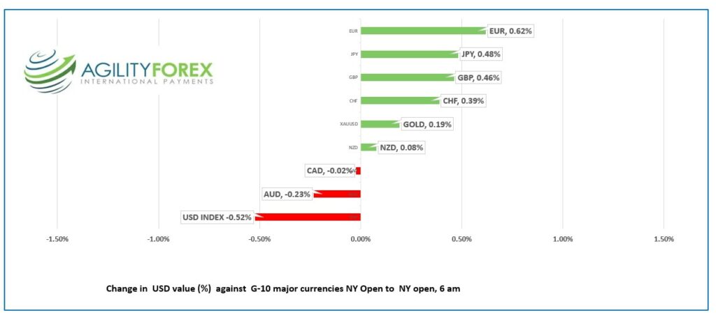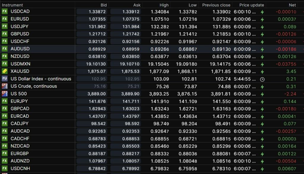 FX open, high, low, previous close as of 6:00 am ET