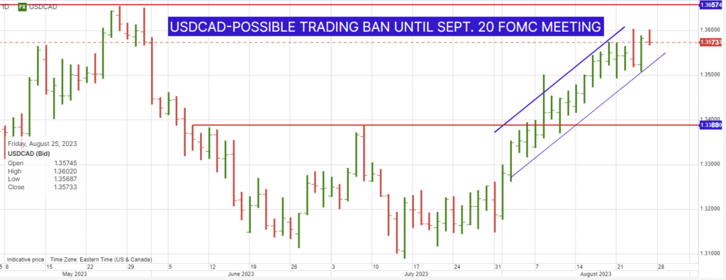 If Powell’s remarks are more hawkish than expected, USDCAD will rally to 1.3750. Conversely, a dovish Powell would knock USDCAD down to 1.3360. Neutral comments will lead to more 1.3360-1.3640 consolidation.