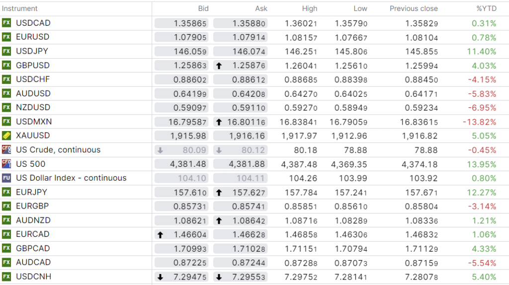 Wall Street closed in the red and Asian equity indexes followed suit. Japan’s Nikkei 225 index lost 2.05% while Australia’s ASX 200 dropped 0.93%. European bourses are trading with an optimistic bias and a 0.73% increase in the French CAC 40 index is leading the pack higher. S&P 500 futures are grinding higher and have risen 0.46%, while the US 10-year Treasury yield is steady at 4.247%.