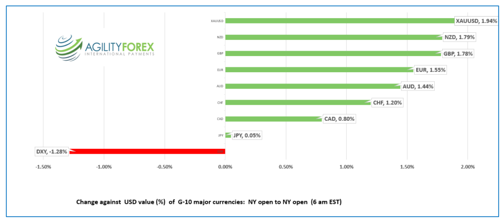 The US dollar caught a bit of a bid after weekly jobless claims were lower than expected (actual 193,000 vs forecast 215,000) and Personal consumption Expenditure data was higher than anticipated.