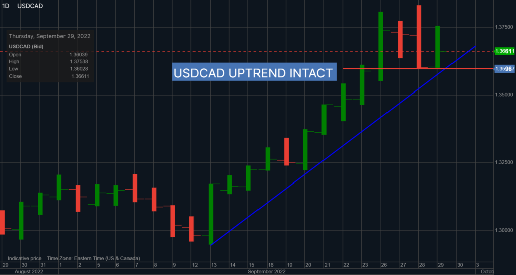 The intraday USDCAD technicals are bullish above 1.3620, looking for a break above 1.3690 to extend gains to 1.3750 then 1.3810. A decisive break below 1.3580 would negate the September rally and extend losses to 1.3460.