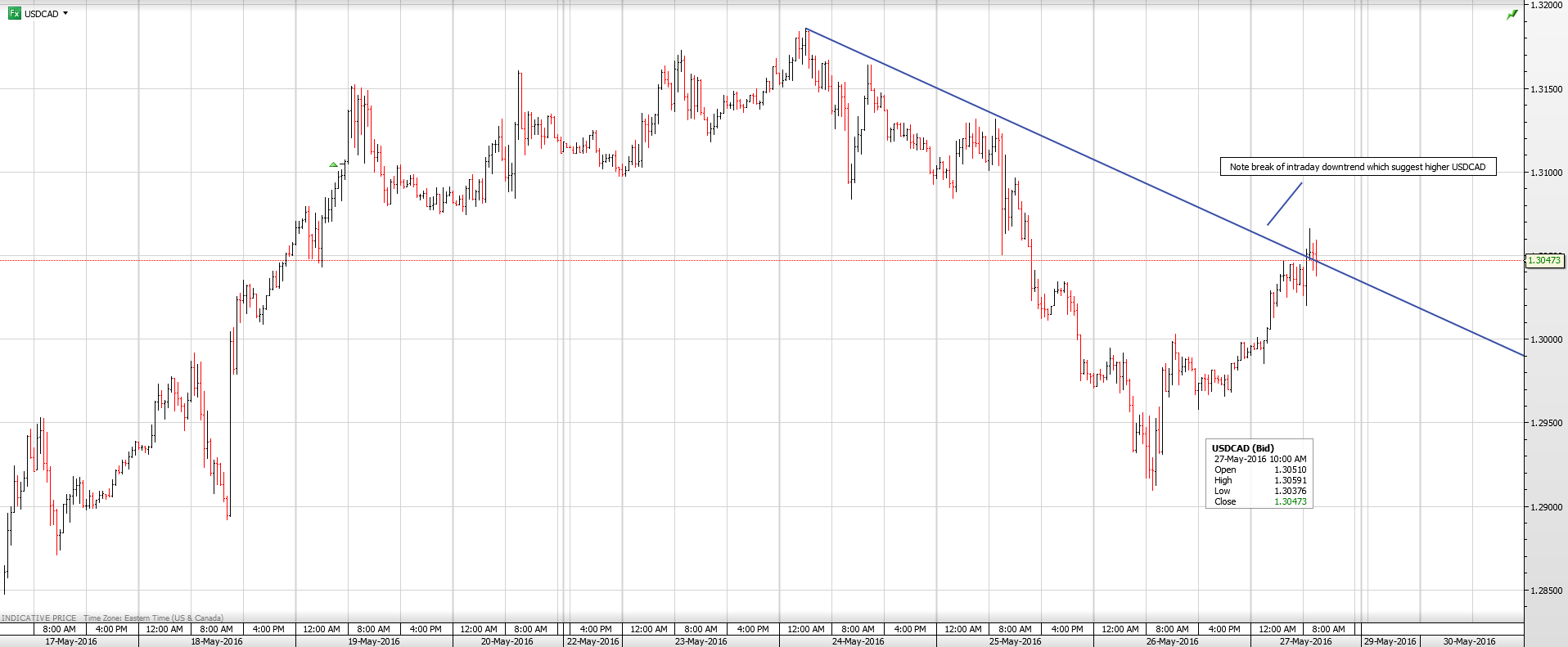 The Intraday USDCAD technicals are bullish while trading above 1.3010 looking for a break of the 1.3050-60 zone to extend gains to 1.3200. A move below 1.3000 will lead back to 1.2900 which is also uptrend support from the May 2, 1.2462 low. A move below 1.2880-1.2900 would extend losses to 1.2500. for Today, USDCAD support is at 1.3010 and 1.2960. Resistance is at 1.3060 and 1.3120